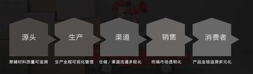 以产品物联身份标识码为基础,实现原料管理-工艺流程-物流管理-渠道管理-消费者管理的全链条产品物联信息系统。帮助提高产品制造、工艺及效益,并以产品身份标识码为核心,建立起产品流通及消费环节的大数据,实现产品全链追溯多元化。